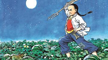 “闰土,给我一块瓜吃吧!”小明一边说,一边伸出手。